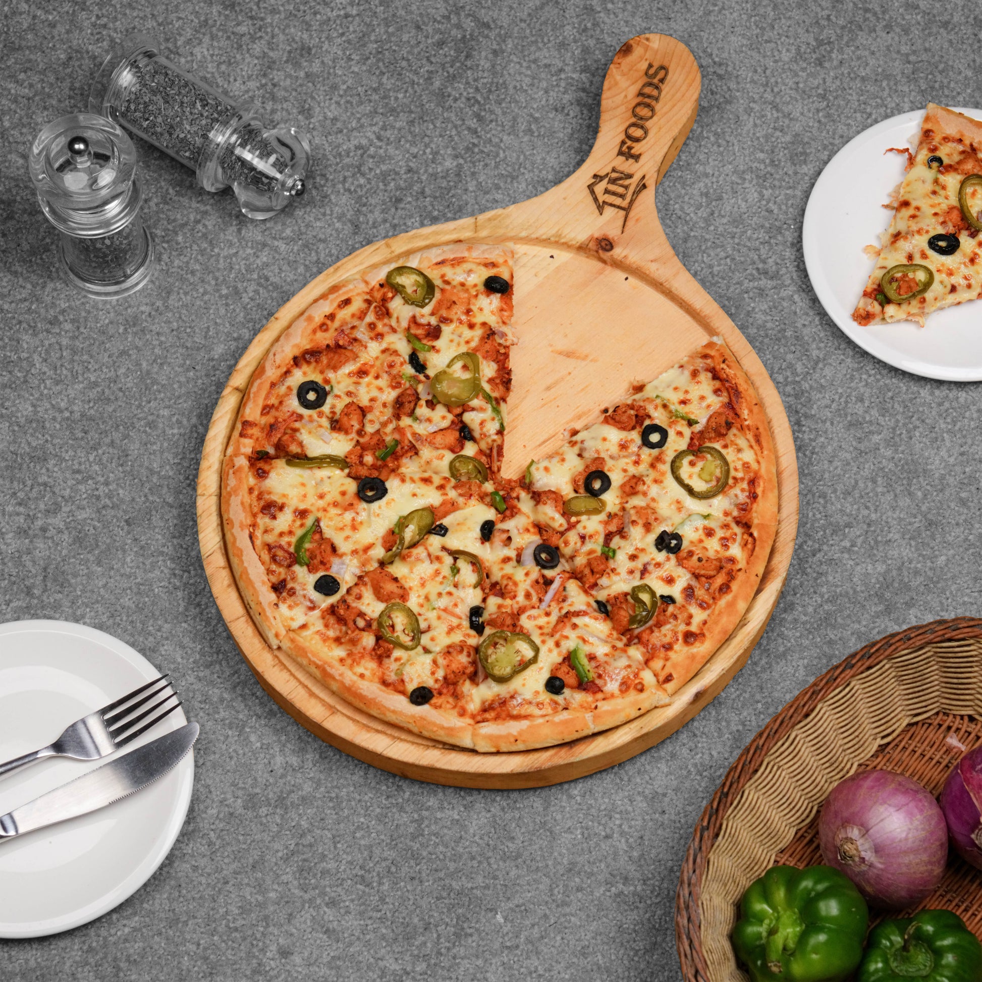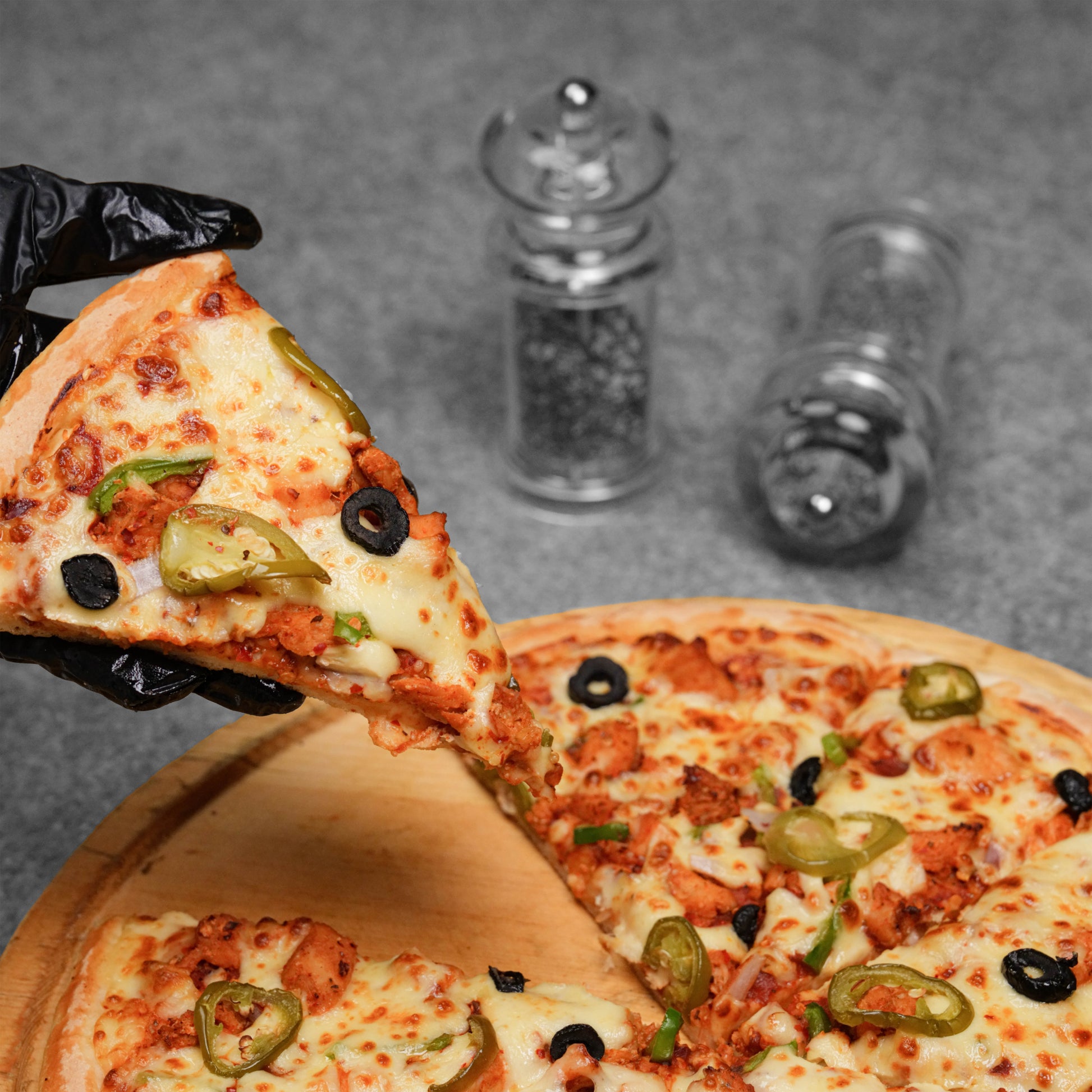 Spicy chicken, onions, olives, jalapeños, and a bold peri peri sauce.
