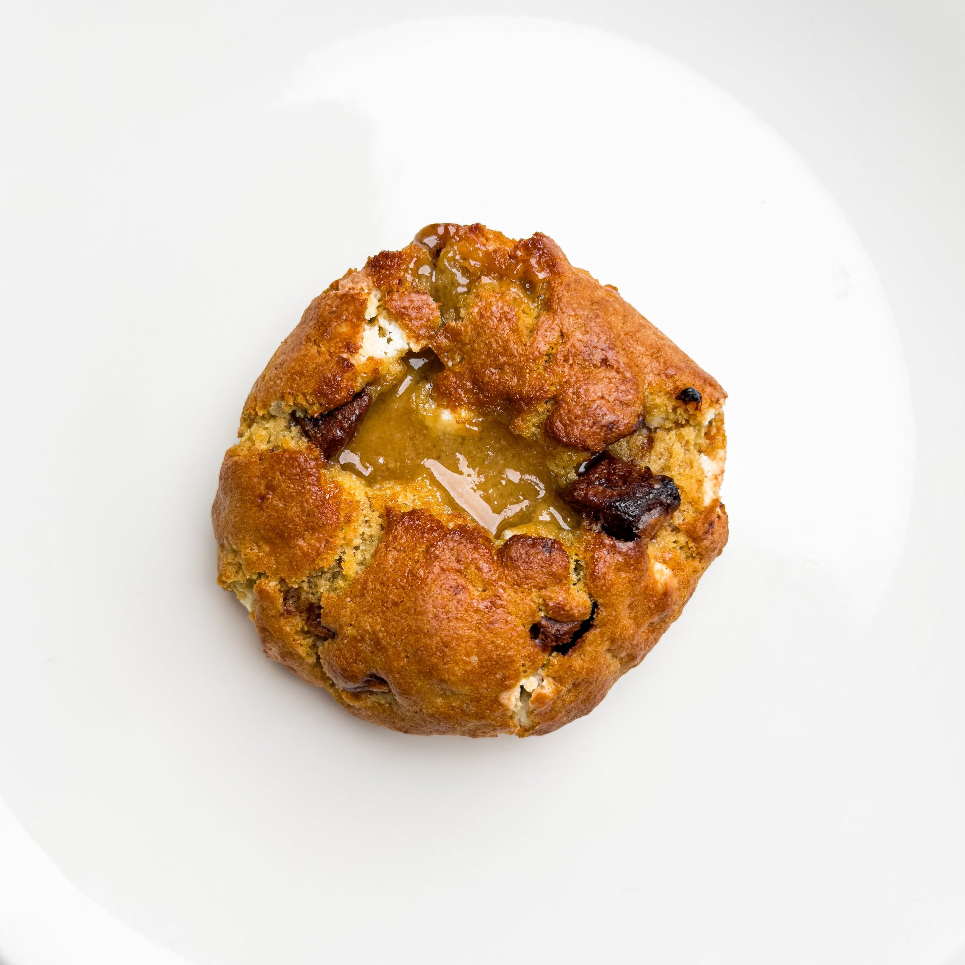 SALTED CARAMEL FILLED COOKIE WITH CHOCOLATE CHUNKS AND WHITE CHOCOLATE CHIPS
